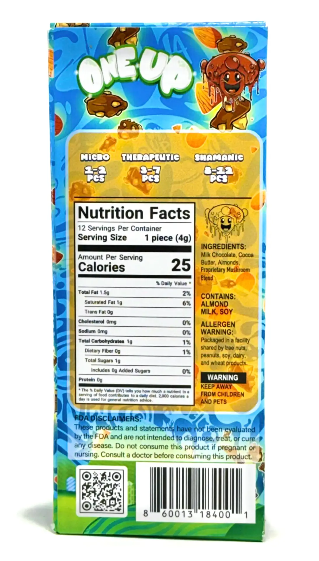 The product is a premium option for buyers seeking smooth chocolate, crunchy almonds, and dependable One Up quality. If you’re ready to purchase a mushroom chocolate bar with added texture and trusted branding, is a solid choice.